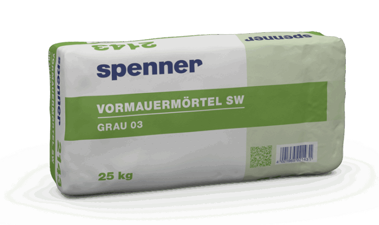 Spenner Vormauermörtel SW werden mit ca. 3-4 Liter Wasser von Hand oder maschinell (mit üblichen auf dem Markt befindlichen Mischern) zu einem verarbeitungsfähigen Mörtel angemischt. Die Mischdauer ist von der bauartbedingten Wirkungsweise der einzelnen Mischertypen abhängig. Nach dem Mischen den Mörtel 5 Minuten reifen lassen. Unterschiedliche Wasserzugabe kann zu Farbunterschieden führen und sollte vermieden werden.
